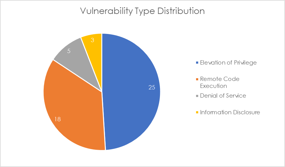 This month's vulnerabilities chiefly revolve around Elevation of Privilege (EoP), Remote Code Execution (RCE), and Denial-of-Service (DoS).